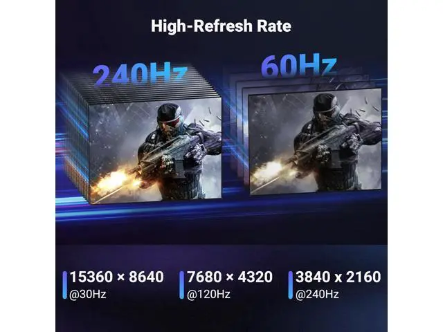 Game Enthusiasts: The DP cable 2.1 is highly recommended for game setups as it works well with game monitors and graphics cards, delivering high-quality video and audio signals with no lag or interference. It supports FreeSync and G-Sync, which are essential for gaming. You can easily connect multiple monitors with Multi-Stream Transport (MST). Variable refresh rate (VRR) and auto low latency mode (ALLM) bring you smoother game experience especially in FPS, 3A and MOBA games