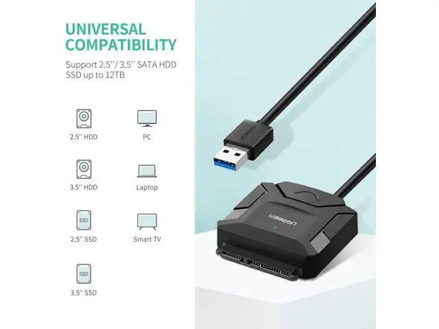 Wide Compatibility: This SATA III to USB 3.0 adapter is compatible with PS4, Xbox, Windows 10/ 8.1 /8/7/Vista/XP, Mac OS. Supports 2.5 / 3.5 '' SATA HDD SSD up to 12TB max.