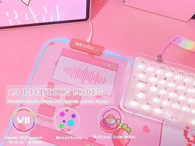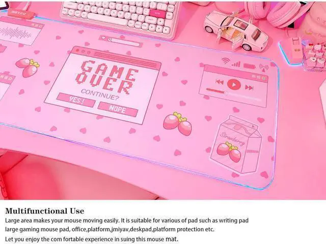 13 Lighting Modes Gaming Mouse Pad Super Glow Fiber provides a great RGB back lit effect. You can choose from 13 lighting modes: 9 static light modes and 4 dynamic mode. Large Size Gaming Mouse Pad at 11.8 x 9.8 x 0.2 inch The gaming mouse pad will fit your mouse perfectly and provide enough mouse movement space, suitable for all types of mice. Easy to use, Plug & Play Gaming Mouse Pad This extended mouse pad is powered by USB, plug and play, no driver required. The control button of this mouse pad has been tested for 10 million times and is extremely durable. Just press it to choose the lighting mode you want. Press and hold about 3 seconds turn ON/OFF. And it has power off memory function remembers your last mode selection. Non-slip & Waterproof Gaming Mouse Pad The durable, non-slip rubber base is designed to eliminate unwanted movement and provide a solid platform for eSports gaming. Waterproof coating surface effectively prevent accidental damage from spilled liquid. ULTRA SOFT & SMOOTH SURFACEDesign with superfine fiber braided material, and allows more accurate mouse movement. Very comfortable when the wrist touches the surface, Best idea for game or work.