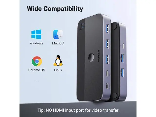Plug & Play: With 4 USB 3.0 ports, the USB 3.0 switcher supports data transfer up to 5Gbps and is backward compatible with USB 2.0; Simple plug and play for any modern operating system: Windows, macOS, Chrome OS, and Linux computers. (*The USB ports are primarily for data transfer and are not recommended for charging devices.