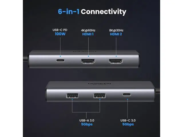 USB C Docking Station: Inspire more potential of your laptops USB-C port with two HDMI ports, a 100W USB-C PD port, a 5Gbps USB-C data port, and two USB-A data ports.