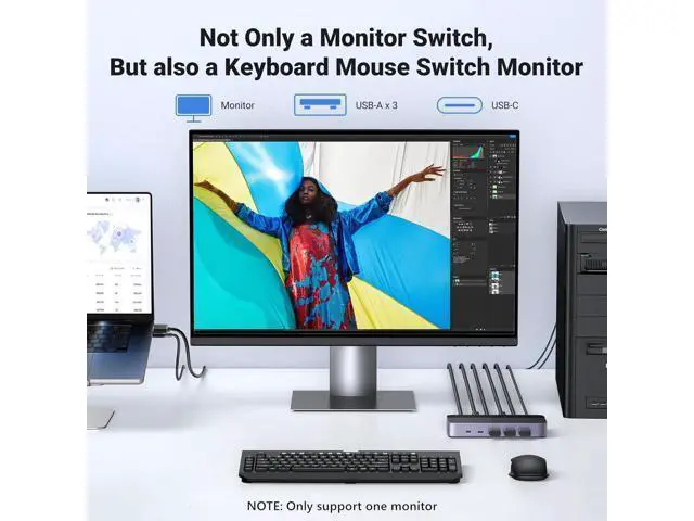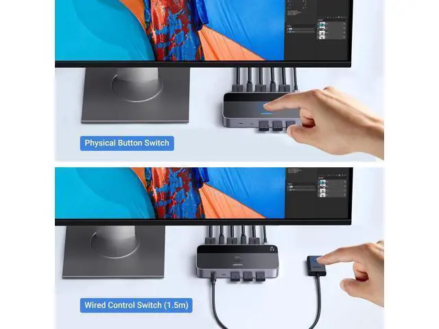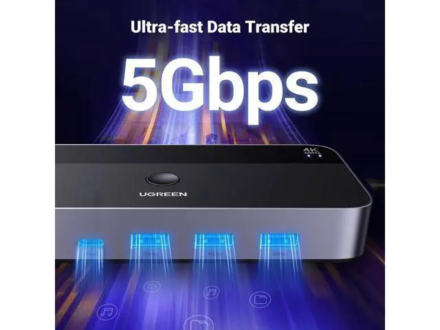 USB 3.0 Ports: UGREEN KVM switches has 3 USB-A ports and 1 USB-C port for sharing USB flash drives, printers, mobile hard drives, U disk, and other USB 2.0 and USB 3.0 devices. USB 3.0 offers data transfer speeds of up to 5Gbps, while USB 2.0 is only 480Mbps. It allows faster file and picture transfer to make work and life more convenient High