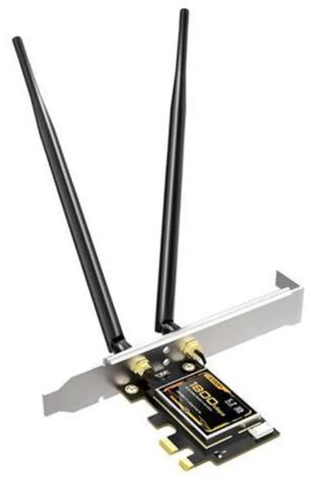 Supporting system: win10 11 (64 bit system) 9655 1800Mbps WiFi 6 PCI-E Bluetooth 5.2 Adapter Dual Band 2.4G / 5.8GH z 802.11AX /AC/A Wireless Network Card 1800m transmission successfully completes the e-sports game 1800m through the wall real Gigabit 5g. It has the characteristics of stability, high speed and low delay. It is not stable to play games online Different data, computer configuration, broadband speed, network environment and the number of Internet users will fluctuate on Ping Scientific cooling device performance wins. In the details, increase the main board to surround the cooling device, improve the cooling performance, and eliminate the instability caused by high temperature in high-speed data transmission The 160MHz broadband channel game is no longer stuck. Compared with the previous generation of 80MHz channel, the generation of 160MHz brings several times the rate improvement, and plays the game incisively and vividly The high gain antenna has good signal through the wall. Two external 6dbi omnidirectional high gain antennas can be easily matched with reasonable layout even in various complex environments