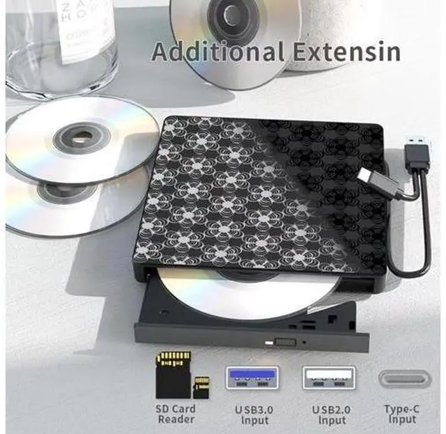 Power Only: This cord supplies only power. It cannot transfer data and must be used alongside the data cable. USB 3.0 High Speed & Supported Disc Type Supported Disc Types: Support the reading, burning (writing/rewriting), and ripping (digitizing) of multiple types of discs, including CD-ROM, CD-R, CD±RW, DVD-ROM, DVD-RAM, DVD±R, DVD±RW, DVD±R DL, VCD, SVCD. (Blu-ray Disc is NOT supported)