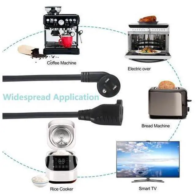 to carry: 125V at 13A, 1625W, meet the power usage of most household appliances. FEATURES No Blocking The Other Outlet With the 45-degree low profile flat plug design can provides access to the plug receptacle that is blocked by another device, which allows you to use two power sockets at the same time. No Blocking The Other Outlet. Handy Little Extension Cords When your kitchen appliance's power cord is too short to connect to a high outlet, a 6-inch short extension cord will do the trick and give your appliance a little extra length. The standard NEMA 5-15R is compatible not only with 2-socket power cables but also with 3-socket power cables Long Strain Relief Design Our plug has long soft strain relief, it pass more than 20000 times bending without breaking, which is solve the problem of broken plug end and exposed insulation after repeated use, and extend the service life of the cable. For 2 Prong and 3 Prong Electrical Cord Standard 3 pin female NEMA 5-15R connector compatible with both 2 plug and 3 plug power cord, which allows you extender your 2 Prong and 3 Prong Electrical Cord.