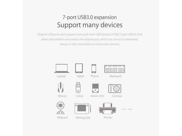 Note: HUB is not a Charger. What is in the box 1 x 7 Ports USB 3.0 HUB 1 x Power Adapter
