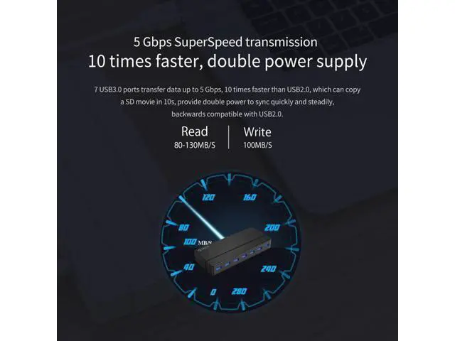 Product Description Color: Black Smart Interactive 7 port USB 3.0 HUB achieved with 2 x Third-generation Fully-integrated VL812 USB 3.0 Controller from VIA-Labs allow to add 7 SuperSpeed USB 3.0 ports for your computer easily and connect 7 USB Device through a single USB 3.0 or USB 2.0 Host. VL812 Controller offer Maximum compatility and performance, compatible with any USB 3.0, 2.0, 1.1 or 1.0 Devices and any USB Host from Windows, Macintosh or Linux computer. USB 3.0 High-througut Ports allow transfer rates up to 5Gbps, 10x faster of USB 2.0 and backward compatible with USB 2.0, 1.1, 1.0. Plug and Play compatible, no additional Driver or Application needed. Compact and slim for carrying and travelling. 3.3F t. USB 3.0 Cable included allow an Easy Connection. Come with Premium 12V 2.5A Power Adapter offer 900mA power for each port. Build-in Surge Protector allow a reliable and secure connectivity. 7 x LED diagnosing Power and activity for each port. If you are running out of USB Ports, H7928-U3 will be an ideal solution for you Performance VL812 SuperSpeed USB 3.0 Controller offer transfer rates up to 5Gbps, 10x faster than USB 2.0, allow to transfer files in a breeze 7 x High-througut USB 3.0 ports enabled allow to add 7 USB 3.0 ports for your computer easily Compatility Dual VL812 USB 3.0 Controller with latest firmware offer Maximum compatility for Windows XP, 2003, Vista, 7, 2008, Windows 8 32 or 64t, Linux kernels 3.0 or Later and Mac Computer Fully compatible with USB 3.0, 2.0, 1.1 and 1.0 Devices & Hosts.