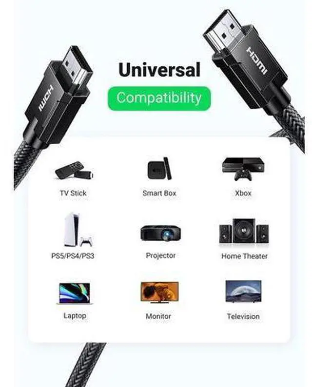 8K 60Hz FUHD: UGREEN hdmi 8k cable supports higher resolution of 8K 60Hz, and compatible with 8K 50Hz, 4K 120Hz, 4K 100Hz, etc.