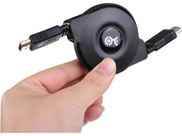 Tangle-free HDMI cord connects a computer media streamer or Blu-ray player to an HDTV monitor or projector with HDMI; Simply pull on both ends of the cable to unwind to the ideal length and then pull the ends again to rewindRetractable HDMI smooth ribbon cable retracts from 43 inches to 3 inches for tossing in your laptop bag; Provides connectivity on the road in a conference room classroom hotel room or an RV4Kx2K video support for resolutions up to 4Kx2K (UHD) including 4096x2160 3840x2160 2560x1600 2560x1440 1920x1200 and 1080pHigh speed HDMI wire with Ethernet supports Audio Return Channel (ARC) HDMI Ethernet Channel (HEC) 48 Bit Deep Color 32 channel audio Dolby True HD 7.1 audio and 3D video; HDCP support for viewing content protected videoSmall and sturdy travel companion A/V cable weighs only a few ounces; cable management reel folds into a 3-inch spool for easy transport and storage; Molded connectors have easy-grip treads and strain relief for frequent use and long life