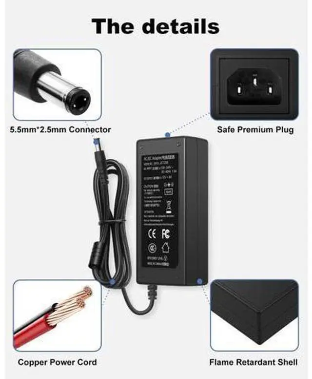 DC Port Size: 5.5 mm x 2.1 mm, compatible with 5.5 mm x 2.5 mm (inside"+", outside"-")Safety