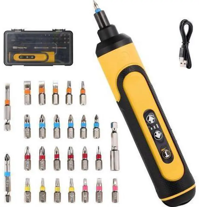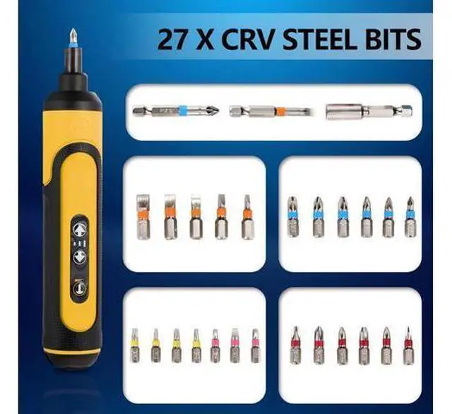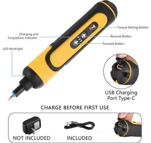 1. Package Includes 1 pc 4V Power Screwdriver 1 pc Extension 24 Bits 2 long driver bits 1 pc Type-C UsB Charging Cable and a lightweight easy-to-carry toolbox. Is completely enough for your electronic repair work2.