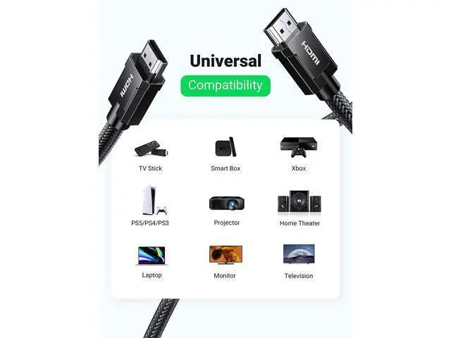 8K 60Hz FUHD: UGREEN hdmi 8k cable supports higher resolution of 8K 60Hz, and compatible with 8K 50Hz, 4K 120Hz, 4K 100Hz, etc.