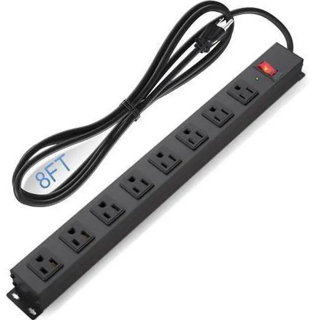 Long Power Strip: 8 feet long cord power cord is constructed of 14AWG cable housed in a durable PVC insulation and jacket that make this heavy-duty cord strong. Fire-resistance Aluminum alloy shell with flame retardant at 1382 makes it more durable and more secure.