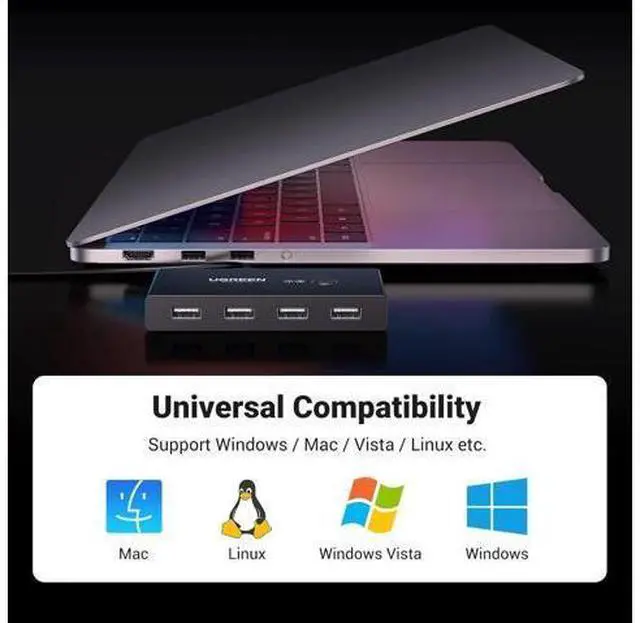 • Wide Compatible System: 4 port USB switch works flawlessly with Windows 10/8/8.1/7/Vista/XP, Mac OS X, Linux, and Chrome OS. Driver-free, simply plug and play.