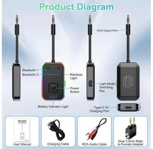 Product Description Experience seamless wireless audio with the 2024 Upgraded Pro Aircraft Bluetooth 5.4 Transmitter by Betrusami. This advanced transmitter features dual 3.5 mm adapters, ensuring wide compatibility with aircraft audio systems, TVs, tablets, computers, treadmills, and other fitness equipment. Equipped with the latest Bluetooth 5.4 technology and a premium Qualcomm chipset, it supports aptX-Adaptive and aptX-Low Latency codecs for high-fidelity sound and ultra-low delayideal for music, movies, or gaming. Dual-device connectivity allows you to pair two headphones or AirPods simultaneously, while the integrated LED indicator provides clear connection status.