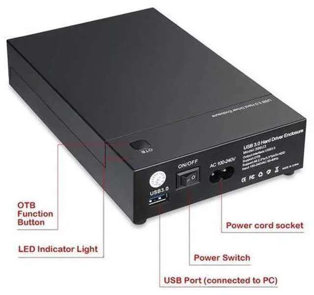 Note: There may be slight size deviations due to manual measurement, different measuring methods and tools. The picture may not reflect the actual color of the item because of different photographing light, angle and display monitor. 1 X External Hard Drive Enclosure 1 X AC Power Cable 1 X USB 3.0 Data Cable 1 X Manual