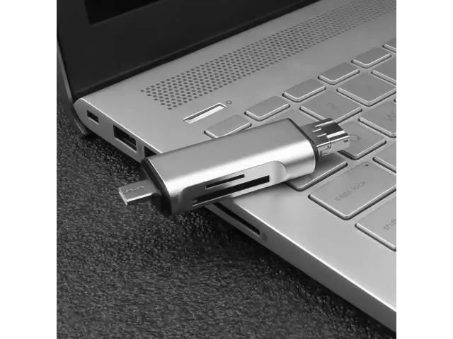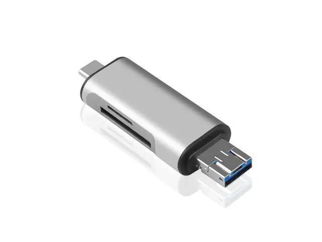 Portable 3 In 1 OTG Type C Card Reader USB 3.0 USB A Micro USB Combo To 2 Slot TF SD Card For Smartphone PC Fast Transfer Feature: 1. Portable Multifunctional 3 in 1 USB-A / Micro USB / Type-C Port TF / SD Card Reader with OTG 2. Using your phone conveniently to read any file, contract, working date, picture, music or film anywhere. Simplify your life and make it wonderful 3. 3 in 1 multiple universal card reader, it includes USB 3.0 (USB-A) Port + Micro USB Port + Type-C Port 4. New design for Type-C product, compatible with New Macbook, Android Smart Phone with OTG function 5. Support TF / SD card read on smart phone through OTG 6. Portable and light design housing with aluminum alloy, easy and convenient for carrying in your laptop bag 7. Perfect matching kits for your new laptop, USB C devices and more 8. No drivers required, plug and play