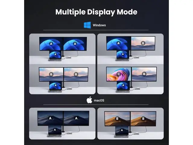 Dual HDMI Display: The Docking Station will hook up two displays to both HDMI ports in 4K@60Hz max, which makes cross-screen multitasking and creative workflows even more efficient. Please note that extended mode is only supported on Windows systems. Due to MacOS limitations, all extended monitors will display the same content when connecting a MacBook.