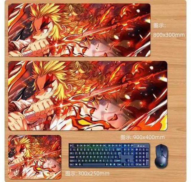 Anime Demon Slayer Rengoku Kyoujurou mouse pad Extended Gaming Mouse Pad with Stitched Edges, Large Mouse pad with Non-Slip Rubber Base for Work & Gaming, Office & Home 800*300mm