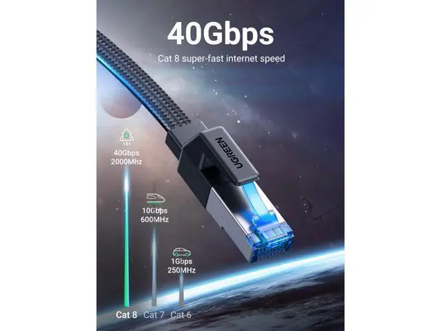 40Gbps 2000Mhz High Speed: UGREEN Cat 8 ethernet cable supports bandwidth up to 2000MHz and 40Gbps data transmission speed, ensuring stable network speed for you to online gaming, surf the Internet, online HD video streaming, upload, download, and more.