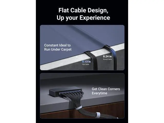Flexible Flat Design: UGREEN Cat 8 Flat Ethernet cable adopts a unique flat and thin design, which allows for a cleaner and safer installation. Whether you want to install it under the door, through the window, or hidden under the carpet, it can be done very easily. It's very suitable for indoor wiring.