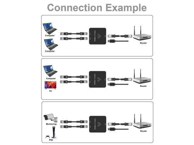 Advanced Chip Technology: The upgraded transmission chip in our gigabit network splitter ensures high-speed connectivity without compromising performance. Easily expand your network ports and enjoy uninterrupted internet access from any device. Whether you' re using it at home, in the office, or anywhere that requires multiple network connections, our splitter has you covered.