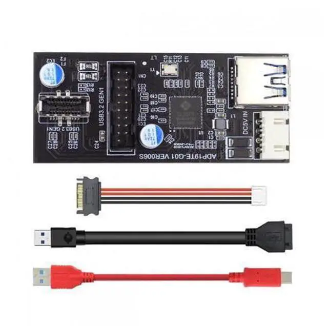Chipset: GL3510 supports the new feature of USB 3.1 Gen1, named Multiple INs to achieve fully utilization rate of 5Gbps data rate, taking advantage of the available bandwidth of USB 3.1 Gen1 bus, offering a highly integrated, application-specific design. Can connect extral Fast Power, Offers a throughput of up to DC 5V 2A when used with SATA port power. Does USB port not supply enough power for your device? Our USB power adapter for your is the solution. Our adapter allows for power to be taken from SATA ports, like a PC SATA Power. There are times you may have an external device, such as a portable 2.5 hard drive, and the standard USB cable is not able to transfer enough power to operate the device. This problem can be easily solved by using this USB 3.0 adapter with extra SATA power cable. Type-C orUSB 3.0 19/20Pin Motherboard Host to DualUSB 3.0 19/20Pin Type-EHeader, With extral SATA power cable. Super-speed up to 5Gbps 10times faster than USB 2.0 Version,
