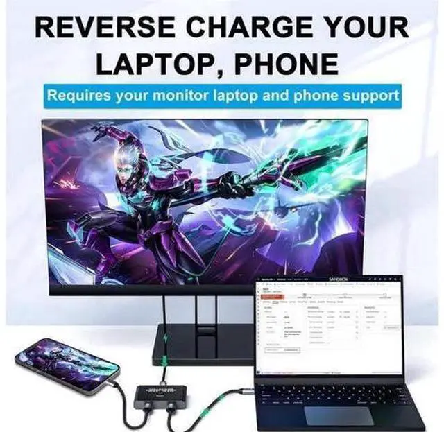 Rapid Reverse Charging: With USB C KVM switch, USB type-c mobile phone, laptop and other devices can be charged while working, compatible with fast charging up to 100W.