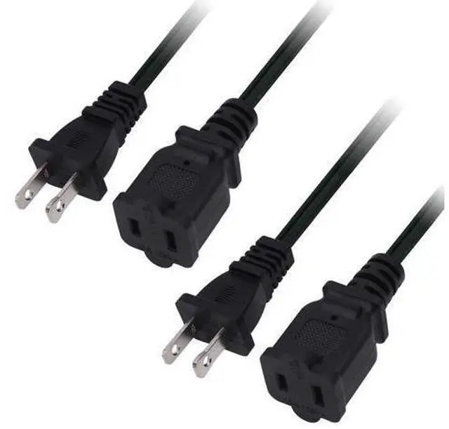 Note: Universal 2-prong compatibility with most common household small appliances and consumer electronics with 2 prong cords. This extension cord is NOT compatible with 3-prong grounded cords. For Home For Office For Outdoor Lights 10ft Extension Cord 2 Pack 10ft Extension Cord 10ft Black Extension Cord 2 Pack 10ft Black Extension Cord 5ft Black Extension Cord 2 Pack 5ft Black Extension Cord Customer Reviews Price Cord Length 10ft 10ft 10ft 10ft 5ft 5ft Color White White Black Black Black Black Count 1-Pack 2-Pack 1-Pack 2-Pack 1-Pack 2-Pack Flat Plug 2 Prong Extension Cord 10foot extension cord is perfect for your desk lamp, portable fan, laptop, phone charger, vacuum cleaner, alarm clock and other household electronics that need a little extra length. 10 feet long, suitable for long-distance use, you can connect the appliances you want to use to indoor and outdoor use. 2 Prong Extension Cord 10FT The 10 foot length and compact plug allow you to greatly extend the existing power cord length without affecting the use of other plugs. It is very suitable to extend the socket on the wall and some hard to reach places.