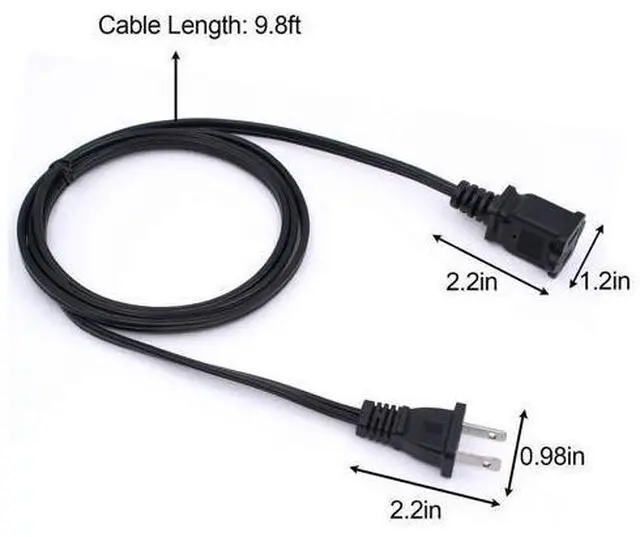 10 feet long, suitable for long-distance use, you can connect the appliances you want to use to indoor and outdoor use. 2 Prong Extension Cord 10FT The 10 foot length and compact plug allow you to greatly extend the existing power cord length without affecting the use of other plugs. It is very suitable to extend the socket on the wall and some hard to reach places.