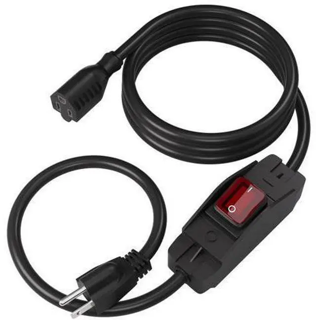 3-Prong Outdoor Extension Cord with Waterproof Switch ON/Off, 1875W Black Heavy Duty Power Cord, 15A 125V Grounded Plug Receptacle for Indoor/Outdoor Appliances(6FT, Black)