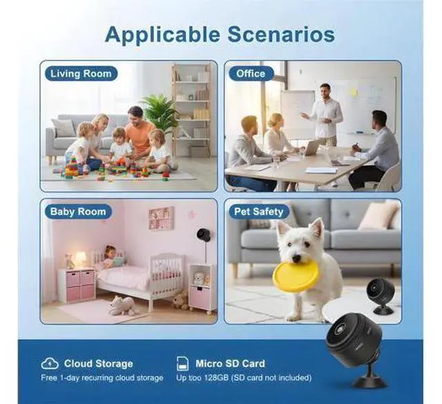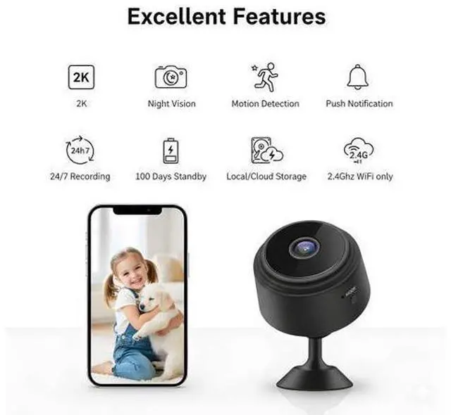 [Easy to Use]:Set up in minutes turn on the mini camera, connect to wifi and add it to the application. Designed for you to set up easily. No wiring required, no complicated installation.