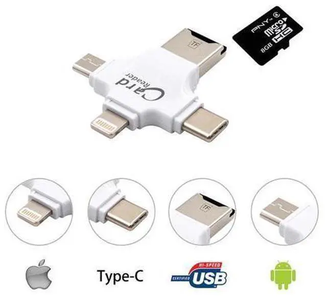 4-in-1: TF, for Lightning 8-pin, Micro USB, USB