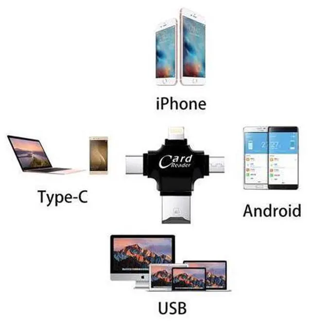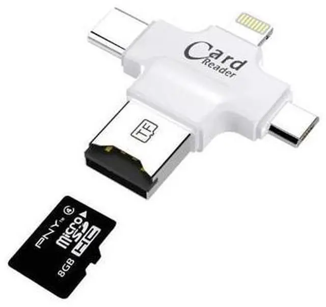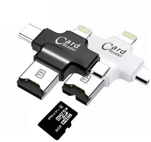 4-in-1: TF, for Lightning 8-pin, Micro USB, USB