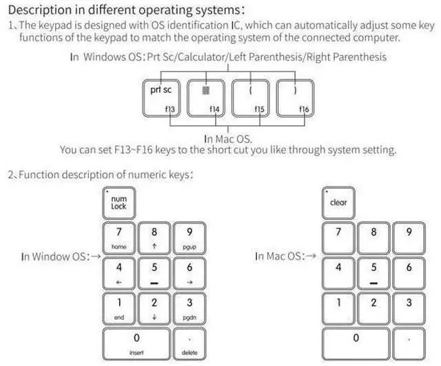 Multi-model Matching: The numeric keypad features a powerful system identification chip that automatically matches Windows or Mac operating systems. The num lock function operates independently of any connected keyboards, ensuring a fast response ^^ This wired numeric keypad with 34 keys is well suited for laptop users; It can be used in conjunction with keyboards without a numeric section, including 87 key, 82 key, 68 key, and 61 key keyboards