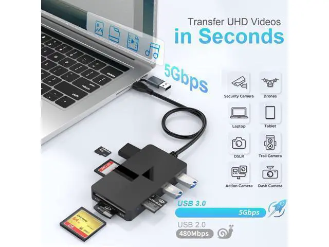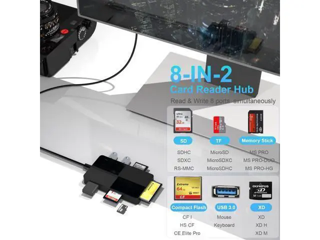 Extensive Compatibility: Supports CF, high-speed CF (UDMA), SD, SDXC (up to 2 TB), SDHC, micro SD, micro SDXC, micro SDHC, TF, MS, XD memory cards; additional 3 USB 3.0 ports connect USB sticks, external drives, flash drives, mice, and more ^^ Reliable