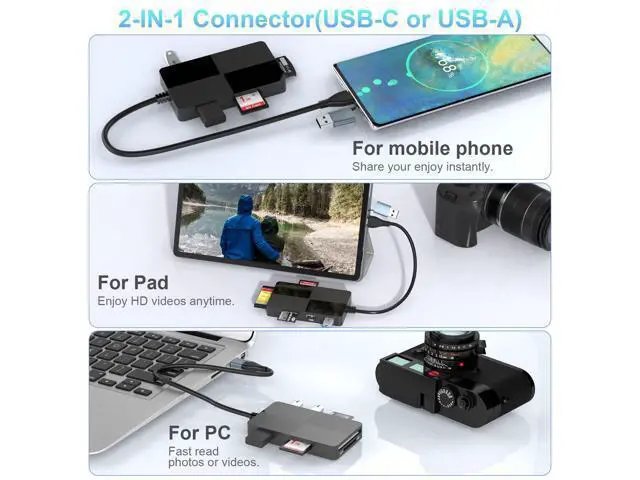 ^^ 2-in-1 Design: Features USB-C and USB 3.0 connectors for easy access to laptops, tablets, and smartphones via USB-A or USB-C slots; plug-and-play compatible with Mac OS, Android, Linux, Chrome OS, and Windows XP/Vista/7/8/10/11 ^^ 5Gbps