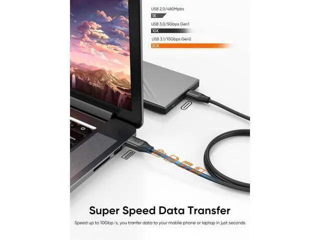 Data Trafer: Gen2 USB 3.1 Type-C to Type-A Cable supports super speed data tramission up to 10Gbps. You can trafer HD movies or songs in seconds with your USB C