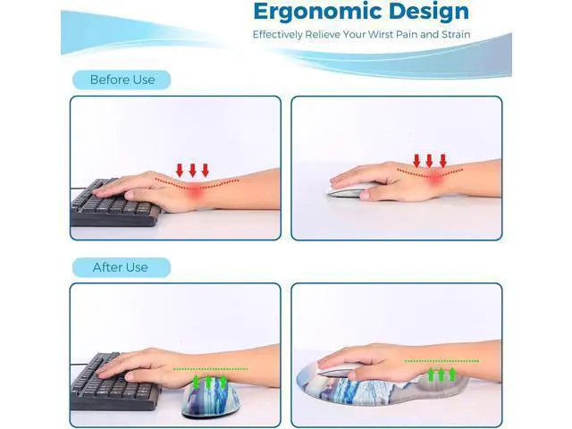 Ergonomic Design: Mouse pad and keyboard with wrist support relieve the pain and stiffness to your hands wrist eblow sholder ease the tension while typing or playing games.