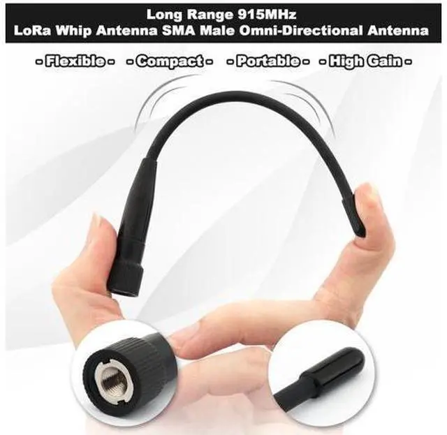 & : This 915MHz long range antenna is lightweight and made of flexible material, easy to store without taking up space, and can be carried anywhere and anytime. It can be deployed flexibly in both outdoor and indoor scenes.