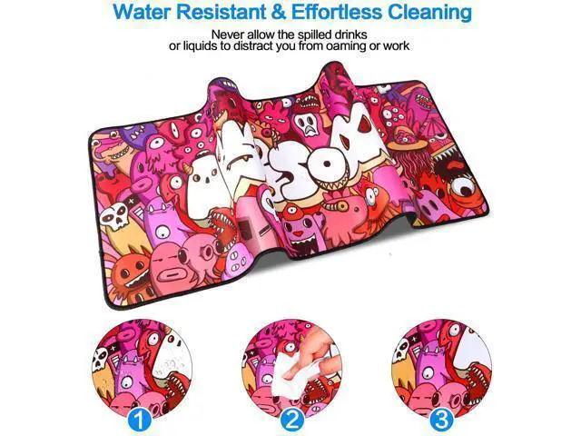 PACKAGE: 1 x large gaming mouse pad * 1 ULTRA SMOOTH SURFACE & NON-SLIP RGB mouse pad features a high quality micro-textured enhances gaming experience, allowing you to enjoy the ultimate precision in the most passionate game. this large mousepad made of soft non-slip rubber which can firmly grip the desktop, provides a superior stability on desk, allowing you to enjoy the ultimate precision in the most passionate game. LARGE SIZE The gaming mouse pad measures 31.5" x 11.8" x 0.08" inch, it could fit your desktop perfectly and provide perfect movement space. WATERPROOF Waterproof surface water resistant coating, effectively prevent accidental damage from spilled liquid Stitched Edges Anti-fraying edge stitching makes to ensure the mouse pad does not fray or peel of surface for a long time use.