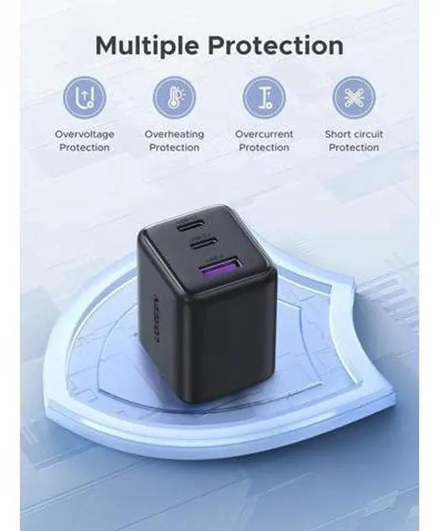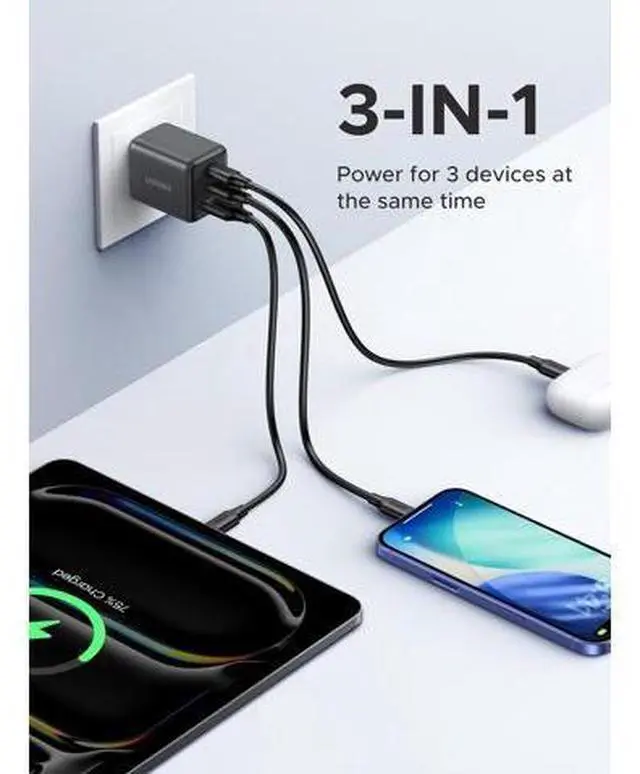 Spend Less Charge More: This USB C Charger has 3 interfaces including 2 USB C and 1 USB A interface which ensures its wide compatibility and can be used with different devices. You can charge three of your devices at the same time. Just enjoy the convenience of multiple interfaces. Real safety is safe inside and out: The charger features an upgraded GaN II chip offering efficient heat dissipation and faster response to over-voltage over-current and short-circuit protection. Its casing is made of flame-retardant matte PC material ensuring complete safety both inside and out for this compact charger.