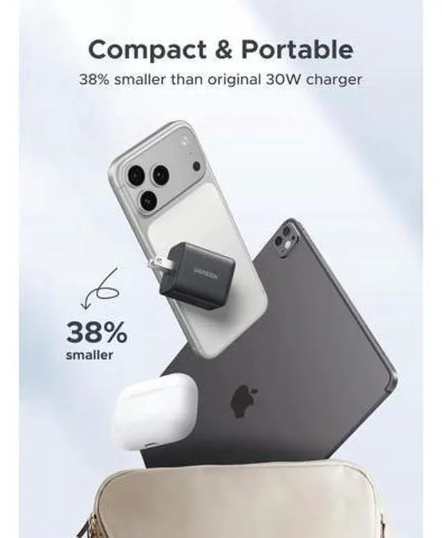 Cooler Choice: This UGREEN USB C Charger Block supports a max power transmission of 30W. Within 30 minutes it can charge your iPhone 17 or Galaxy S25 to about 60%. Not only that the Always-On Temperature Detection also ensures that it will not overheat during the fast charging process.