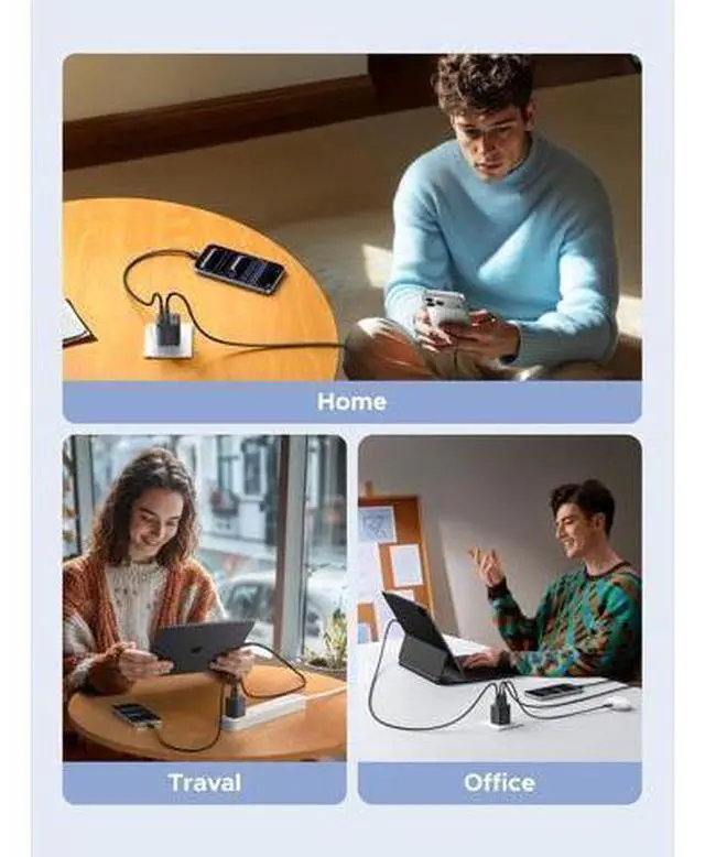 Compact and lightweight: This charger easily fits into your bag or pocket making it perfect for travel office or daily carry. Its small size doesnt just save space it also keeps your desk tidy reduces clutter and lets you charge multiple devices anywhere without hassle.