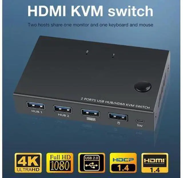 Fine Craft: 2 In 1 out KVM switcher 4K is compatible with 1.4 and HDCP 1.4 and supports resolution up to 4K@60Hz. With this switch, you can enjoy the most luxurious video and audio. 5.