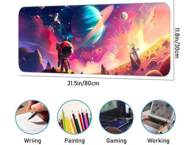 SizeOur oversized mouse pad is designed for comfort and efficiency. Measuring 31.5 x 11.8 inches, it provides ample space to hold your mouse, keyboard, and other desktop essentials. Smooth SurfaceThe smooth and delicate surface allows the mouse to glide smoothly and provide precise control for work or gaming. Non-slip BaseNon-slip rubber bottom, with anti-slip technology, fits tightly to the desktop and does not shift during intense operation Stitched EdgeReinforced stitching prevents surface peeling and is durable, ensuring long-term use. Personalized DesignThe unique design stands out. Use a beautiful mouse pad to add a touch of style to your office life, a beautiful desktop decoration