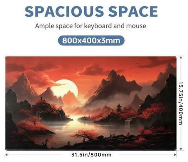 Large Size: This Large Mouse Pad Is 31.5 X 15.7 In (80 Cm X 40 Cm), Offering A Wide Area For Keyboards And Mouse To Move Around. This Extended Gaming Mousepad Xl Keyboard Mat Desk Mat Fits Different Gaming Desktops, You Can Also Use It As Desktop Or Platform Protector. Exquisite Japanese Sunset Mountain mouse pad patterns give you a better experience.