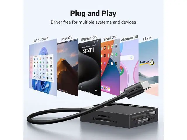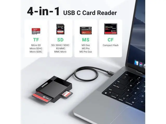 One: Designed with SD/Micro SD/CF/MS slots, This USB C SD Card Reader supports most standard memory cards, including SD/SDXC/SDHC/Micro SD (TF) /Micro SDXC/Micro SDHC/UHS-I/Compact Flash/Memory Stick Born for