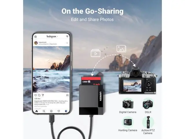 Ease: This USB C Memory Card Reader supports transfers up to 5Gbps speed, allowing you easily transfer 1G files in seconds 4