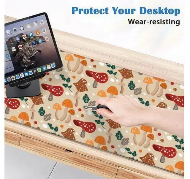 Environmental, and safe to use. ^^ Soft and Non-slip Rubber BaseThe soft and dense non-skid nature rubber base keeps the pad firmly in place, it can effectively prevent the mouse and keyboard from sliding and moving for stable operation. The desk pad is flexible enough to be rolled up for easy transport, to move around so you can work or game wherever you want. ^^ Suitable for many occasionsLarge enough size can protect the desktop from abrasion and liquid spills. Works well on all types of desks including wood, glass, leather, metal, marble desk and more.